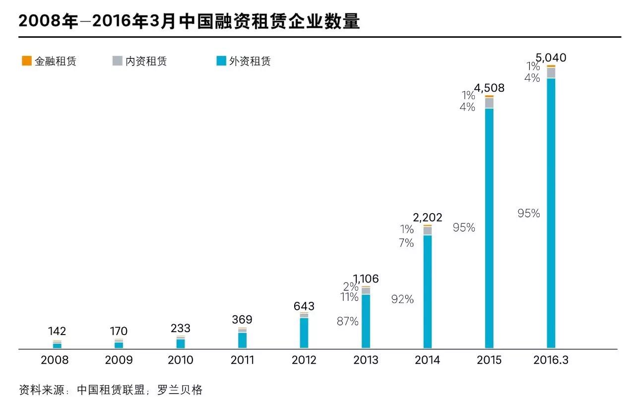在中国,虽然该行业起步较晚,但2008年以来呈爆发式增长。在三类融资租赁公司中,金融租赁在资产规模和收益率方面均为行业领头羊。在商业模式方面,各类融资租赁公司基于股东背景形成差异化的商业模式,构建核心竞争力。