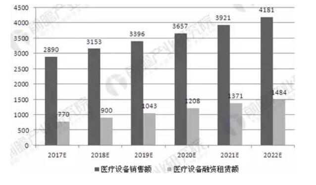 2017-2022年医疗设备融资租赁行业市场容量预测(单位:亿元)